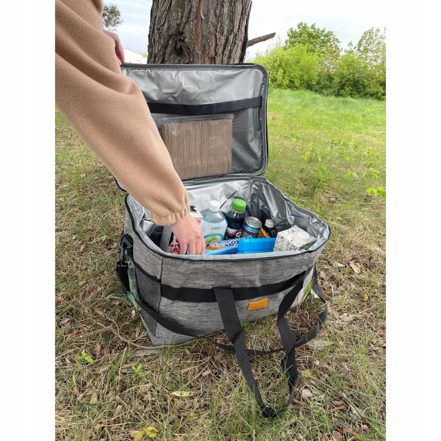 Ta torba je idealna izbira za piknike, izlete na plažo, kampiranje ali vsakodnevne nakupe, saj omogoča varno shranjevanje in prenašanje tudi najbolj občutljivih izdelkov. Vključena sta dva vložka za še boljšo termoizolacijo, kar pomeni, da bo vaša vsebina ostala hladna ali topla dlje časa.