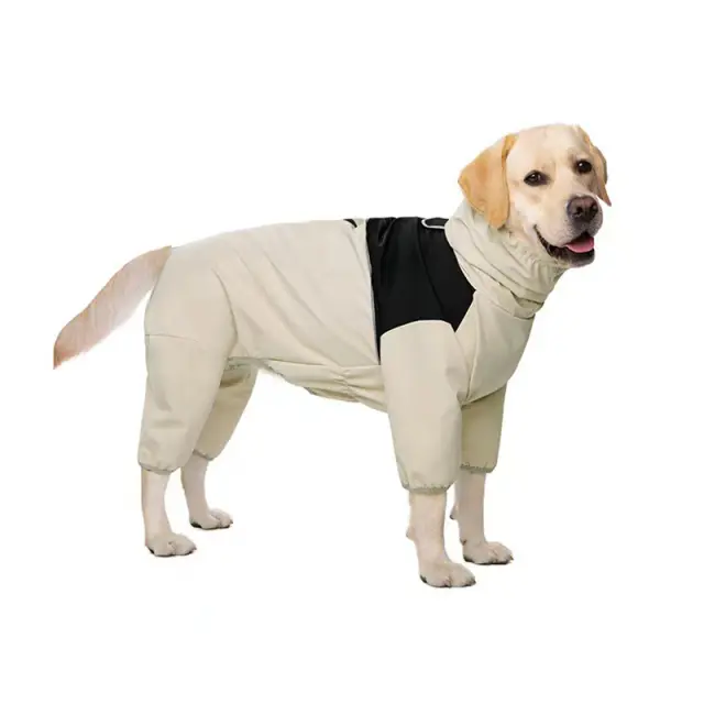 Celoten dizajn: pasji plašč ima celoten dizajn, ki zagotavlja dodatno zaščito za telo vašega psa. Pokriva prsni koš, trebuh in noge, da ostanejo čisti in suhi.