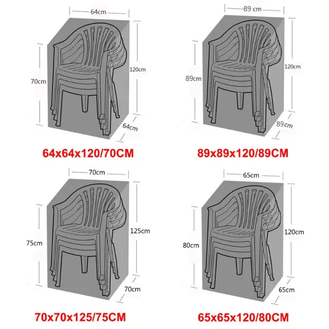 Vodoodporna prevleka: Ta prevleka nudi izjemno zaščito pred dežjem, snegom, UV-žarki in prahom, tako da vaši zunanji stoli ostanejo suhi in čisti vse leto.