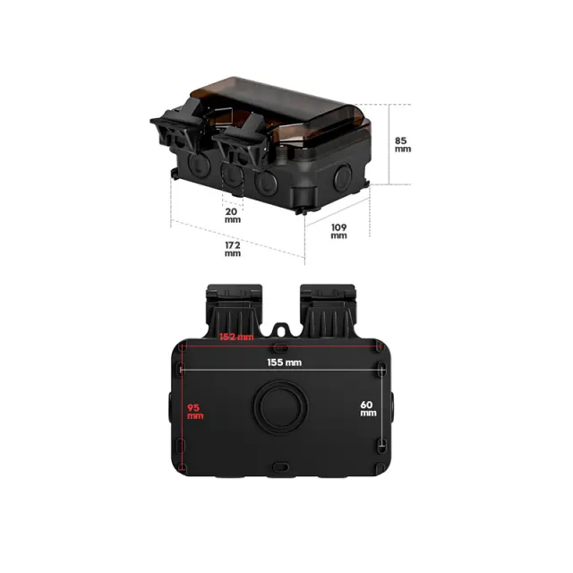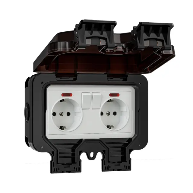 Vodoodporna zasnova: Ta zunanja vtičnica ima vodoodporno stopnjo IP66, kar zagotavlja zanesljivo zaščito pred dežjem, snegom in prahom. Idealen je za uporabo na vrtovih, terasah, v delavnicah in na vseh območjih, ki so izpostavljena vremenskim vplivom.