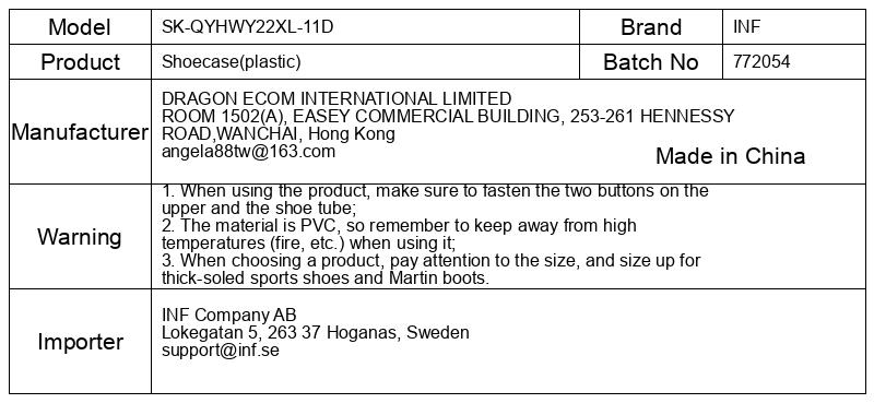 1. Ko uporabljate izdelek, se prepričajte, da zapnete dva gumba na zgornjem delu in cevi čevlja; 2. Material je PVC, zato ne pozabite, da se pri uporabi izogibajte visokim temperaturam (ogenj itd.); 3. Pri izbiri izdelka bodite pozorni na velikost, pri športnih čevljih z debelim podplatom in martincih povečajte velikost.