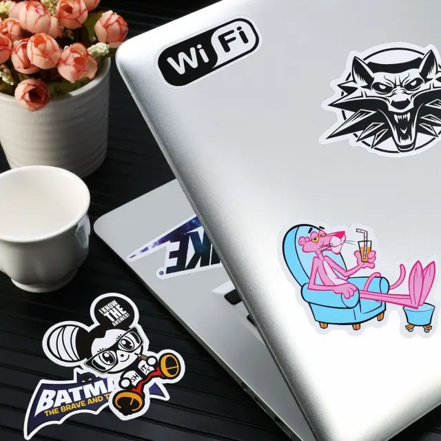 100 nalepk za označevanje vaših stvari: Velik paket 100 trendovskih PVC nalepk z različnimi motivi. So vodoodporni in se lahko uporabljajo na avtomobilu, motorju, kolesu, rolki, snežni deski, računalniku, prenosniku, Macbooku, kovčku, PS4, Xboxu, Nintendo Switchu, mobilnem telefonu/ovitku za mobilni telefon in še veliko več.