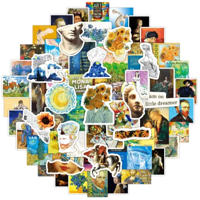 Umetniški in vsestranski dizajni: s 100 edinstvenimi starinskimi dizajni Van Gogha in Mona Lise v slogu grafitov dodajo te nalepke vašim stvarem pridih umetnosti in osebnosti. Vsaka nalepka meri od 3 do 8 cm, kar omogoča različne velikosti, ki ustrezajo vašim potrebam.