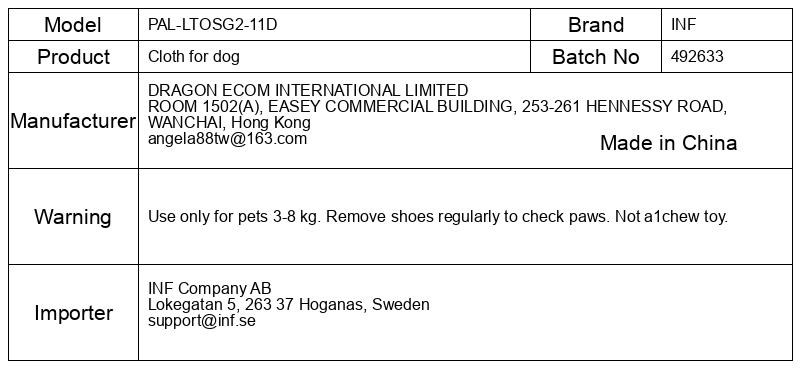 Uporabljajte samo za hišne ljubljenčke s težo 3–8 kg. Redno sezujte čevlje, da preverite tačke. Ni igrača za žvečenje.