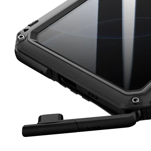 Integrirana zaščita pred vodo, prahom, udarci in močnimi padci. Kovinsko in silikonsko ojačana struktura, skladna z vojaškimi standardi. Vgrajeni zaščitni zaslon ohranja odzivnost na dotik. Vijačno zapiranje in pokrov priključka za dolgotrajno vodotesnost.