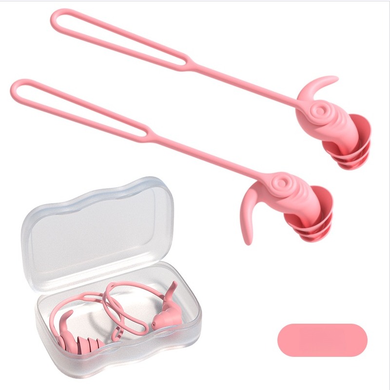 Vodoodporni plavalni čepki z vrvico - zasnova proti izgubi Pink
