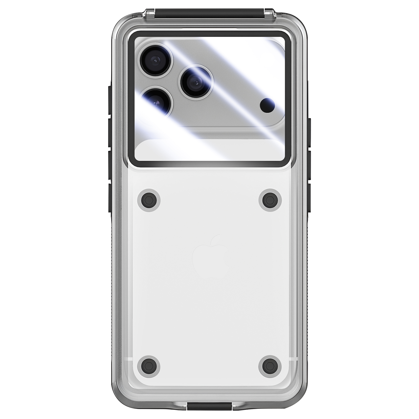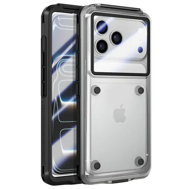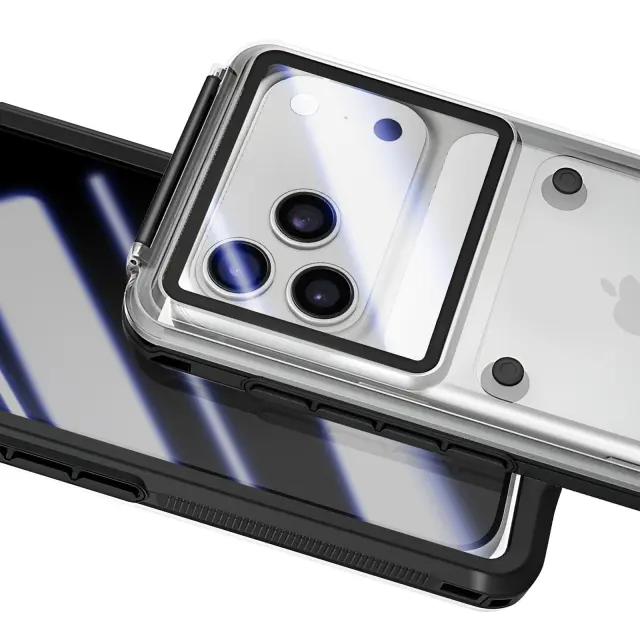 Ta vodotesni etui IP68 za iPhone 17 Pro Max je odporen na potopitev do globine 30 metrov ter zagotavlja popolno zaščito pred prahom in udarci.. Njegova dvomaterialna struktura združuje prožen silikonski okvir s togim polikarbonatnim hrbtiščem in tako tvori zanesljivo hermetično pregrado.. Visoko prozorna folija na zaslonu ohranja občutljivost na dotik in zaznavanje Face ID tudi z mokrimi rokami. Namenski fotografski objektiv pod vodo ostane čist in zajame ostre slike brez meglice ali zameglitve.