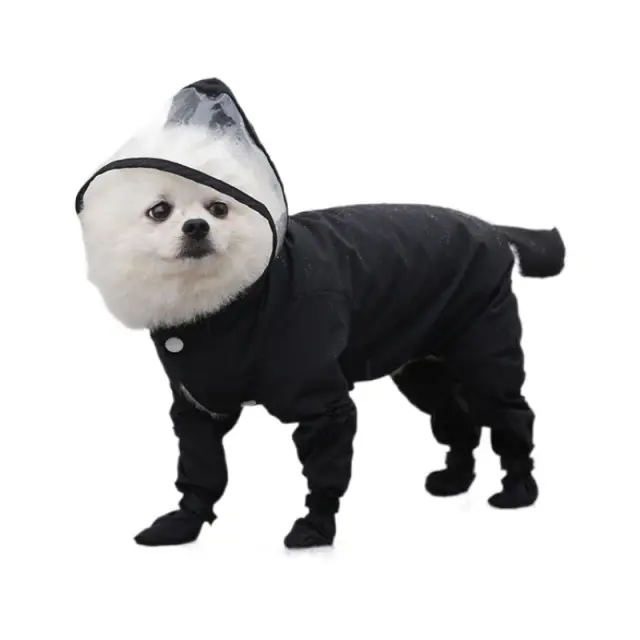 Vodotesen pasji dežni plašč s kapuco in prevleko za noge za pse S