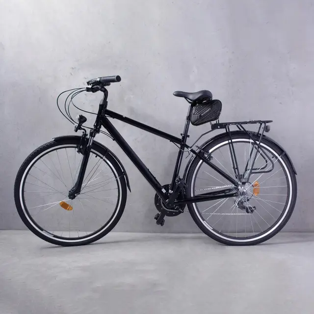 • Izdelan iz materiala, odpornega na vodo in udrtine. Konstrukcija kolesarske sedežne torbe je trdna, trpežna in vodotesna
