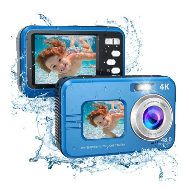 3,5 m/11 FT podvodna kamera: Vodoodporna zasnova omogoča, da se ta podvodna kamera potopi 3,5 m (11 čevljev) pod vodo – kot nalašč za potapljanje z masko, vodne parke ali druge vodne avanture, vključno s plavanjem, driftanjem, deskanjem, plažo in kopanjem (Opomba: Prepričajte se, da vratca baterije varno zaklenjena, preden vzamete fotoaparat pod vodo.)