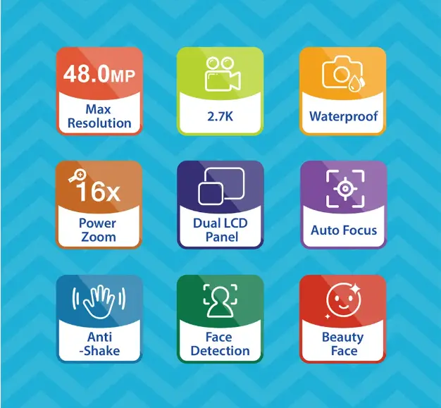 Digitalni fotoaparat 48 MP in 4K: fotoaparat ima zmogljivo ločljivost slike 48 MP in možnost snemanja videa 4K ter je opremljen z 2,8-palčnim zaslonom za enostavno gledanje. To zagotavlja, da sta vsaka slika in videoposnetek, ki ga posnamete, podrobna in resnična – da ohranite svoje dragocene spomine na najboljši možni način.
