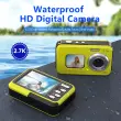 Dvojni zasloni: Podvodna kamera ima 2 zaslona za preprosto fotografiranje selfijev. 1,7-palčni HD zaslon na sprednji strani omogoča preprosto fotografiranje avtoportretov, 2,8-palčni HD zaslon na zadnji strani pa vam omogoča bolj jasno opazovanje subjekta med fotografiranjem.
