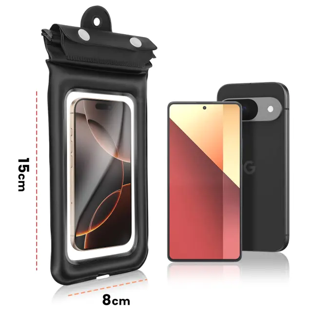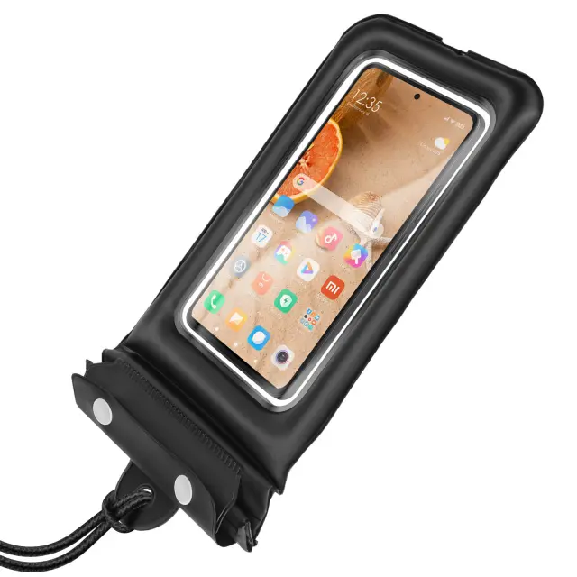 Vodotesno ohišje za telefon do 6,8 palca na dotik z nastavljivo vrvico, Črna
