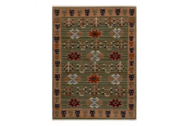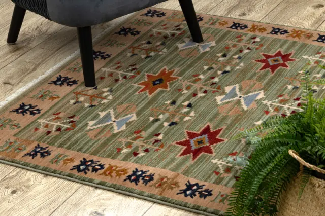 Volnena preproga KESHAN Čopki, etnični, orientalski 1250/53565 zelena / oranžna 80x145 cm