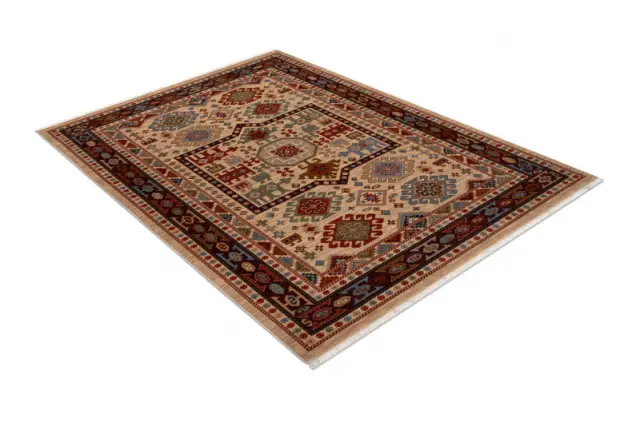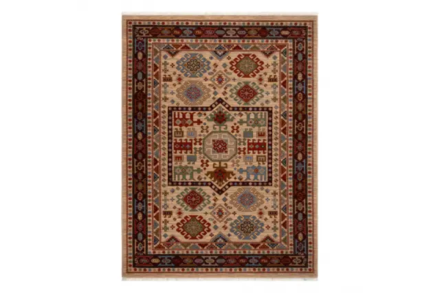 Volnena preproga KESHAN Čopki, Ornament orientalski 6668/53555 bež / bordo 120x145 cm