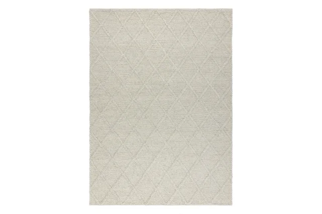 Volnena preproga TAHAR 99001C bež - ROČNO TKANA petlja, rombovi, boho 200x290 cm