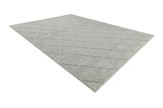 Volnena preproga TAHAR 99001G siva - ROČNO TKANA petlja, rombovi, boho 120x180 cm