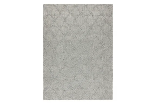 Volnena preproga TAHAR 99001G siva - ROČNO TKANA petlja, rombovi, boho 200x290 cm