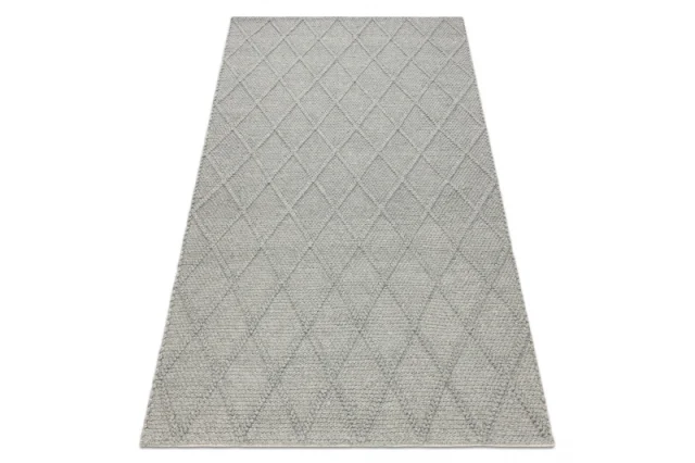 Volnena preproga TAHAR 99001G siva - ROČNO TKANA petlja, rombovi, boho 90x150 cm