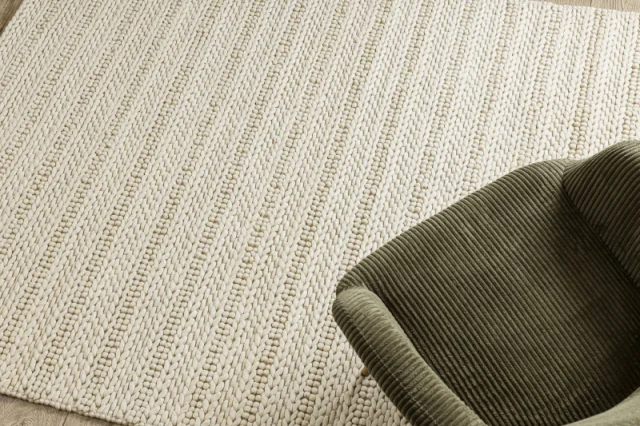 Volnena preproga TAHAR 99002B krema - ROČNO TKANA petlja, Linije 160x240 cm