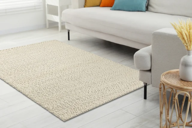 Volnena preproga TAHAR 99005B krema / siva - ROČNO TKANA petlja, uniforma 120x180 cm