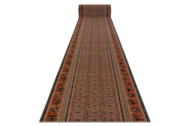 Volnena tekač KASHQAI 4301/501 orientalski, okvir zelena / oranžna 67 67x1350 cm
