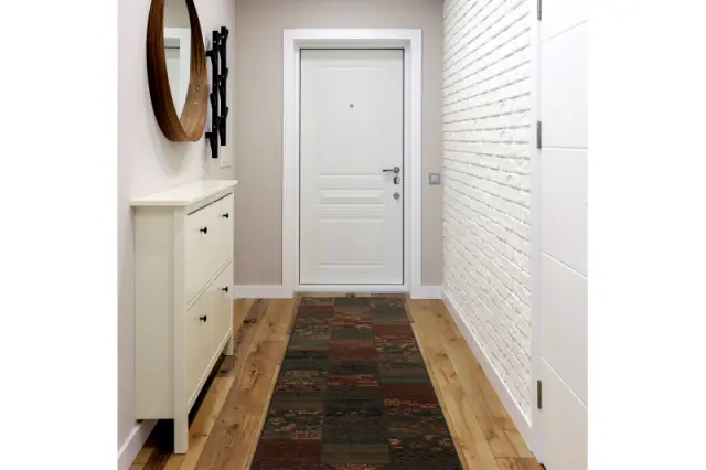 Volnena tekač KASHQAI 4327/400 orientalski, patchwork zelena 67 67x130 cm