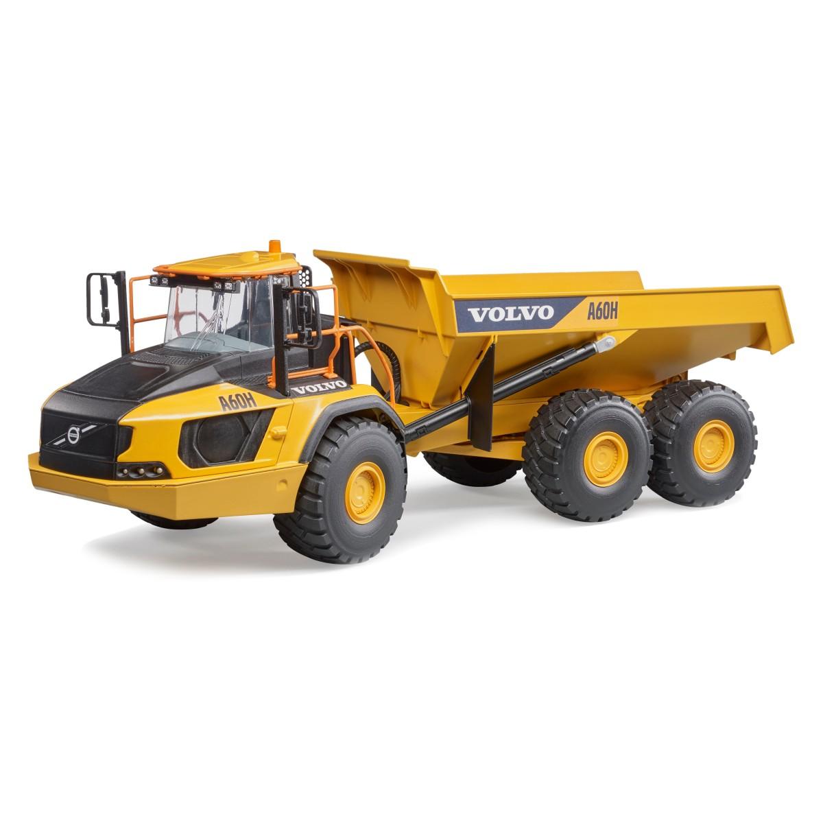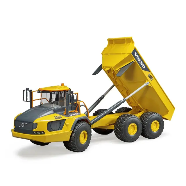 Bruder Volvo Hauler A60H tovornjak kiper Velikost: 68 x 22,5 x 22,5 cm (1:16) KAMION Volvo A60H je idealen za prevažanje razsutega tovora, zemlje, asfalta, jalovine v kamnolomih in prodnih jamah. Izdelan iz viskokovalitetne plastike. Primerno za otroke od 3 let dalje.