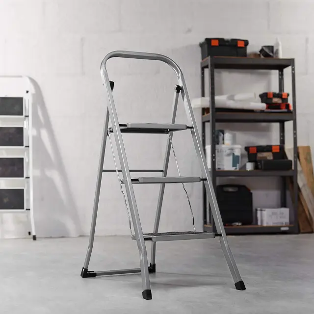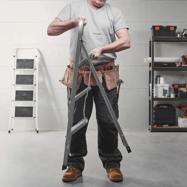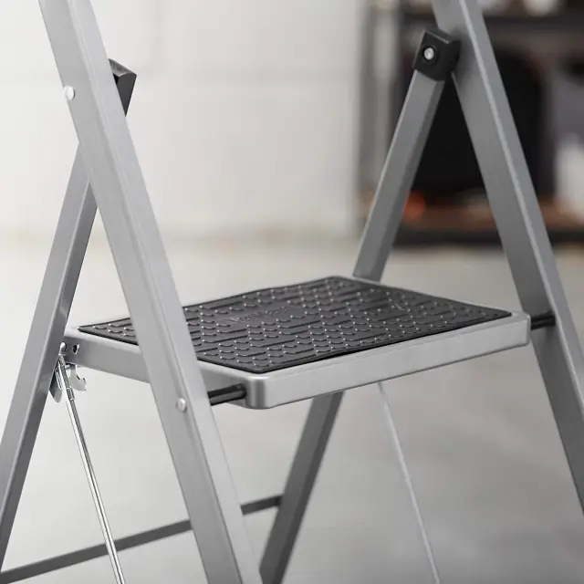 Protizdrsne gumijaste noge držijo lestev na mestu in preprečujejo odrgnine na tleh.