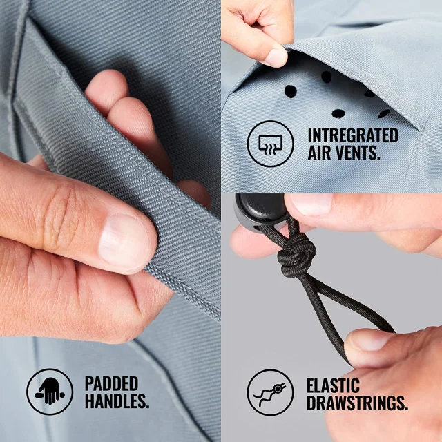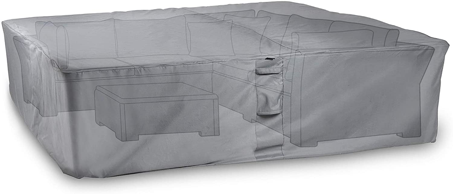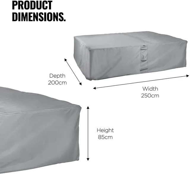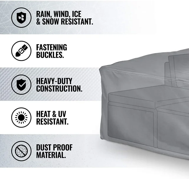 Izdelana iz močnega 600D poliestra z vodoodporno oblogo iz PVC-ja, ta prevleka učinkovito ščiti vaš pohištveni set pred vetrom, dežjem, zmrzali, UV-žarki, umazanijo, prahom in še več.