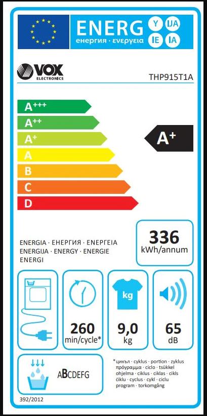 VOX kond. sušilni stroj THP 915 E [A+, 9 kg, 15 prog., toplotna črpalka]