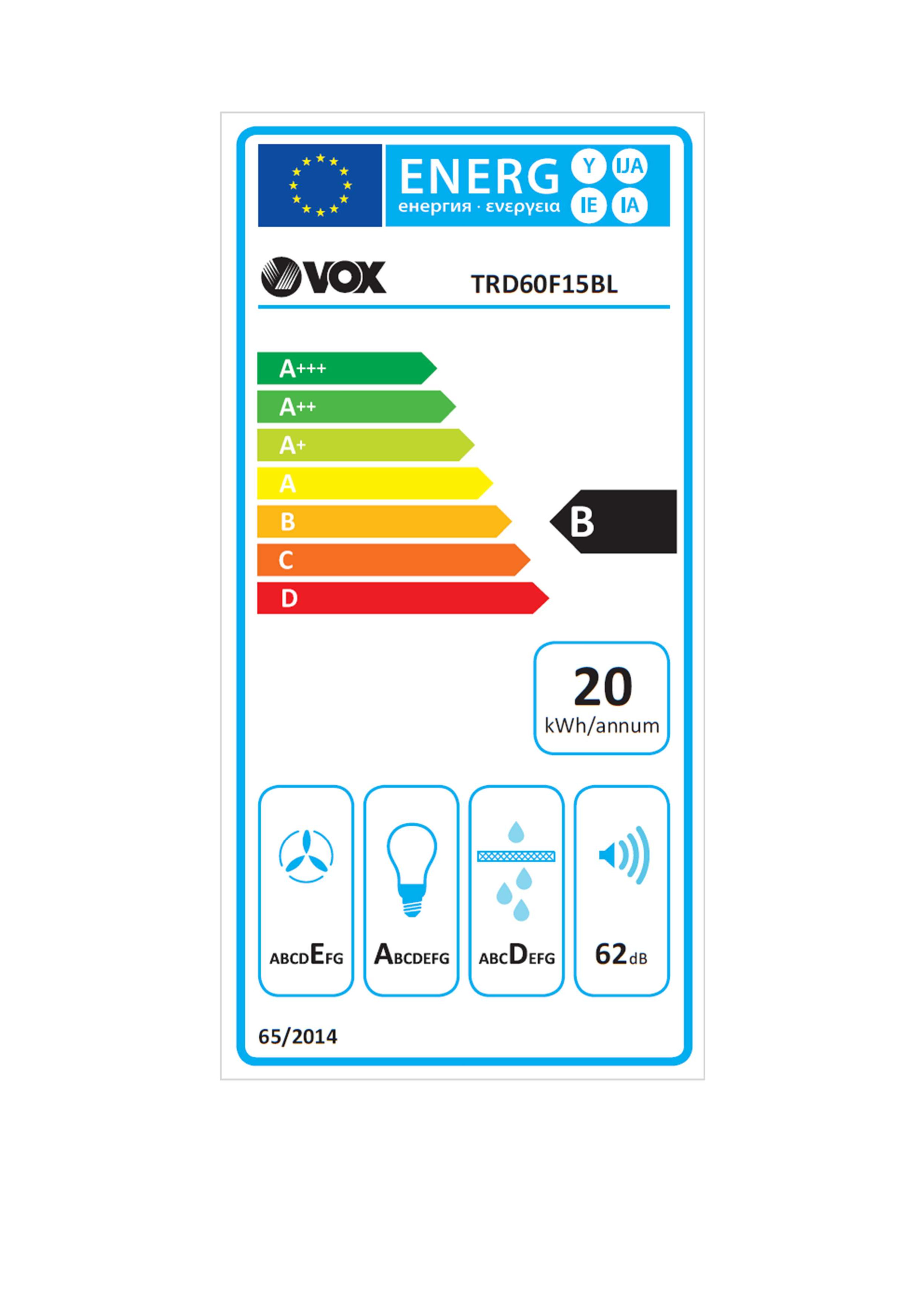 VOX kuhinjska napa TRD 60F15 BL [B, 2 hitrosti, pret: max. 200m3, črna]