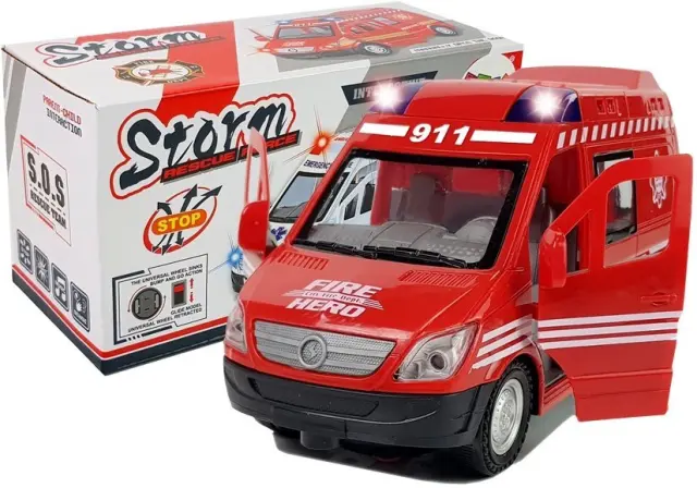 Avtomobil ima zvočne in svetlobne učinke, značilne za gasilska vozila, pa tudi odpiralne elemente. Popolnoma dodelana notranjost avtomobila je opremljena z vsemi elementi pravega vozila, kot so volan, armaturna plošča, sedeži, odprta so tudi sprednja vrata. Utripajoči petelini in zanimivi zvočni učinki dajejo vašemu otroku občutek, da je v pravi gasilski akciji, voznika in sopotnika pa lahko posedite v kabino. Vozilo ima premična kolesa, zaradi katerih se lahko brez težav premika po tleh, preprogi ali dvorišču.