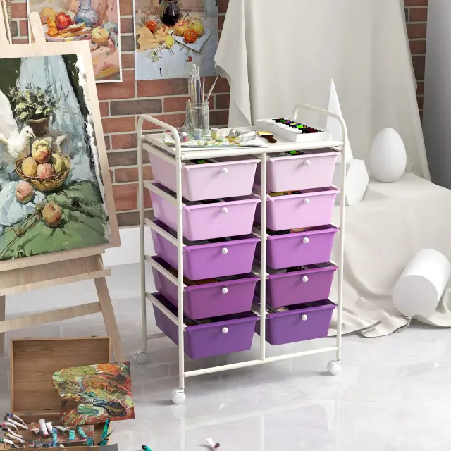 Voziček z 10 zlagljivimi predali Voziček za predale Zabojnik za zvitke Kopalniški voziček Vijolična barva
