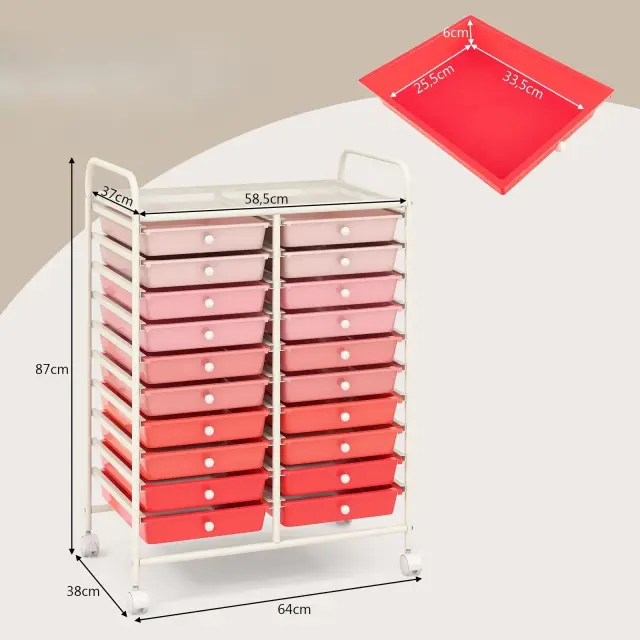 Voziček z 20 zlagljivimi predali in kovinskim okvirjem Zabojnik za zvitke Kopalniški voziček Roza