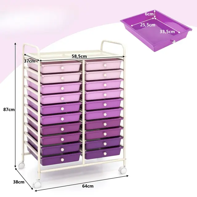 Voziček z 20 zložljivimi predali in kovinskim okvirjem Roll container kopalniški voziček