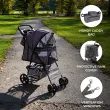 Voziček za hišne ljubljenčke je izdelan iz robustnega jeklenega okvirja, ki podpira hišne ljubljenčke do 15 kg, kar zagotavlja tako trdnost kot varnost. Njegova zložljiva zasnova omogoča enostavno shranjevanje in prevoz, tako da ga lahko vzamete s seboj kamor koli. Voziček je zasnovan za udobje in zaščito ter ima zložljivo streho in dežno prevleko, ki vašega ljubljenčka varujeta pred vremenskimi vplivi. Strateško postavljena prezračevalna okna zagotavljajo, da bo vaš ljubljenček ostal hladen, medtem ko bo užival v razgledu.