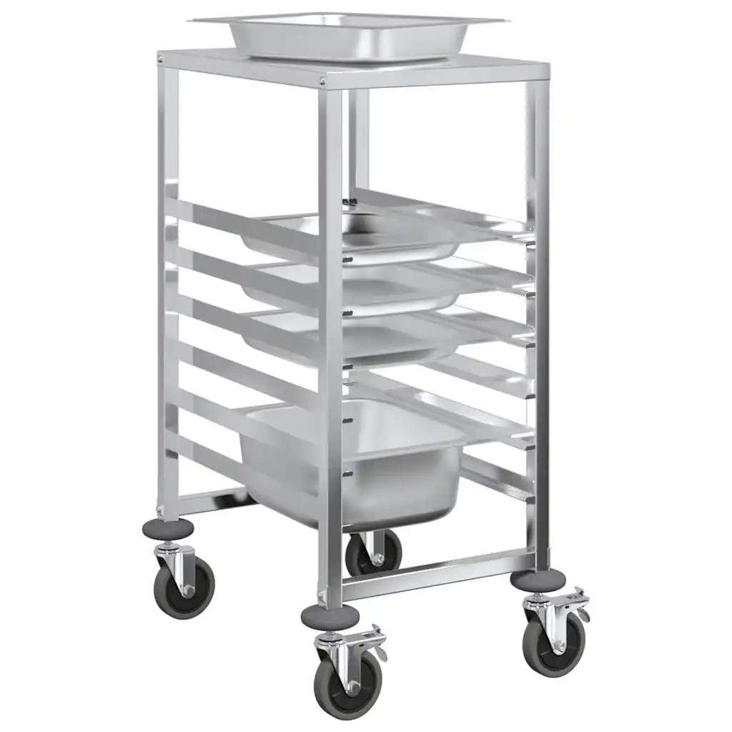 Voziček za pladnje vidaXL 6 GN pladnjev iz nerjavečega jekla 39x55x87 cm