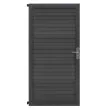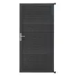 Vizualno vrata ponujajo značilno dvostransko obdelavo, ki ustreza vašim oblikovalskim željam. Ena stran ima naravno teksturo lesa, druga pa bolj sodoben videz letvic. – oba v elegantni, nevtralni sivi barvi, ki se poda k vsakemu zunanjemu okolju. Z višino 180 cm in širino 90 cm ustvarja impresivno mejo, ki podpira zasebnost, hkrati pa dviguje slog vašega zunanjega prostora.