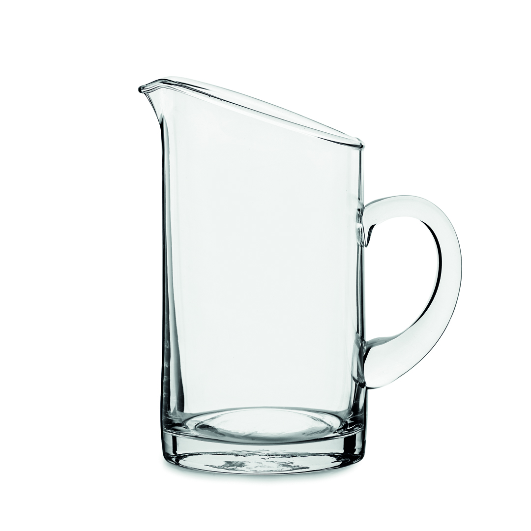 Cilindričen vrč z ročajem Olly, blagovne znamke Fade, se ponaša z elegantno oblikovano silhueto prostornine 900 ml in poševnim izlivom. Izdelan je iz kakovostnega prozornega stekla, ki je primerno za pomivanje v pomivalnem stroju. Vrč lahko uporabite za serviranje alkoholnih in brezalkoholnih pijač.