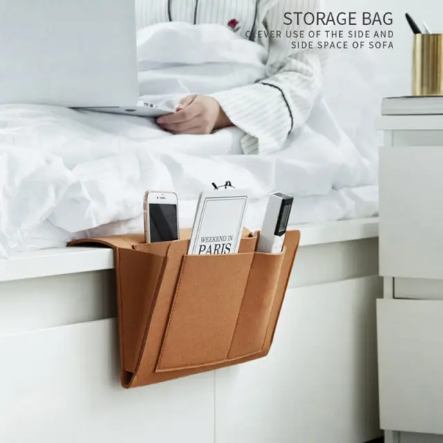 Torba za shranjevanje ima 1 velik žep in 2 majhna žepa. Popoln za shranjevanje knjig, pisal, daljinskih upravljalnikov, mobilnih telefonov, tablic, slušalk, očal, polnilnih kablov in več. Enostavno se namesti ob kavč ali posteljo.