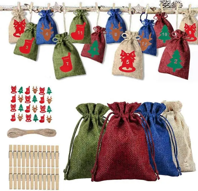 Vrečka iz blaga Koledar Meme Adventni koledar, 24 božičnih koledarjev z nalepko Vrečke za koledar presenečenja za božič