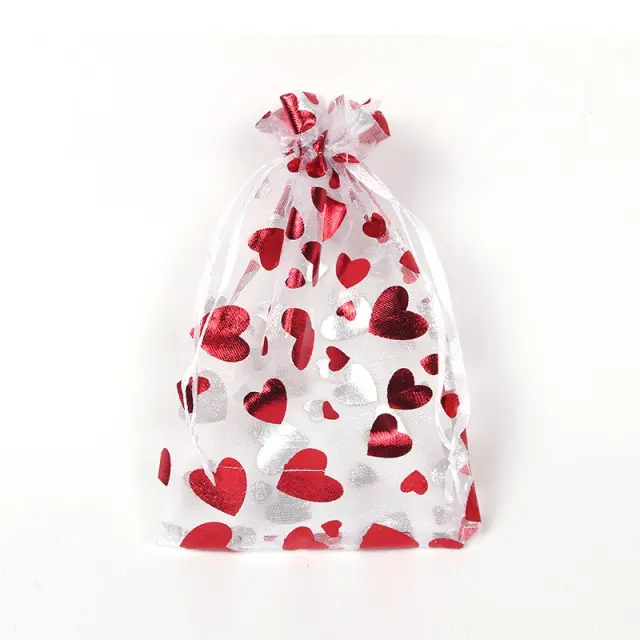Vrečke iz organze z zlatim srčnim potiskom 13x18cm (50 kosov) - Vrečke z vrvico