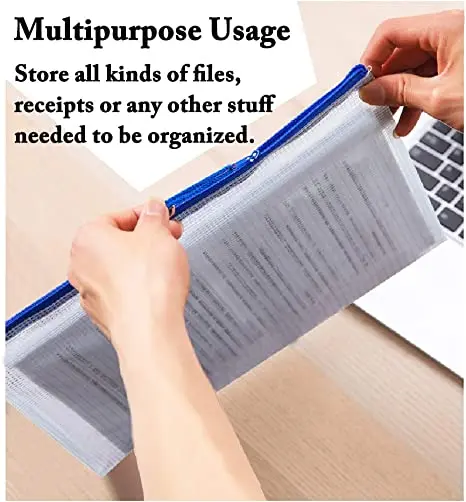 A4 plastične vrečke z zadrgo za shranjevanje papirjev, dokumentov in zapiskov, pa tudi za razvrščanje in organiziranje drugih predmetov. Vrečke z zadrgo so izdelane iz trpežnega PVC-ja in ščitijo pred obrabo in umazanijo.