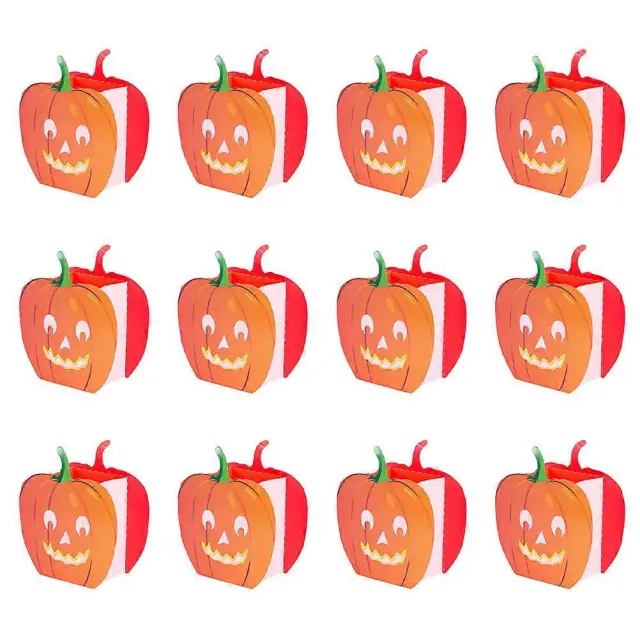 Vrečke za dekoracijo iz buče, ornament festivala za noč čarovnic, oranžna 14,5 x 7,5 x 6,2 cm, svetlobni učinek, za večkratno uporabo, 12 kompl