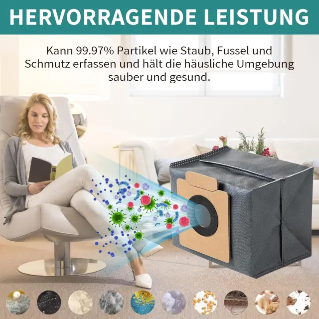 Enostavna namestitev in zamenjava: Vrečke za prah so visoke kakovosti, s preprosto zasnovo, ki omogoča hitro in enostavno namestitev in zamenjavo. Poskrbite za nemoteno delovanje sesalnika z minimalnim časom izpada.