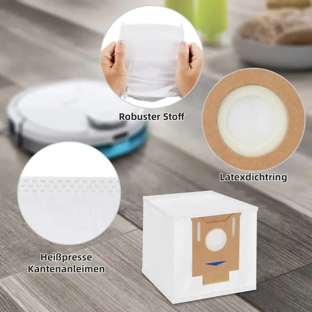 Visokokakovostne vrečke za sesalnik Ecovacs DEEBOT OZMO T8/T8 AIVI/T8 MAX/N8 Pro/N8 Pro Plus, Yeedi Vac in Yeedi Vac MAX. Izdelane so iz gostega in trpežnega materiala in jih je enostavno zamenjati brez razlitja.