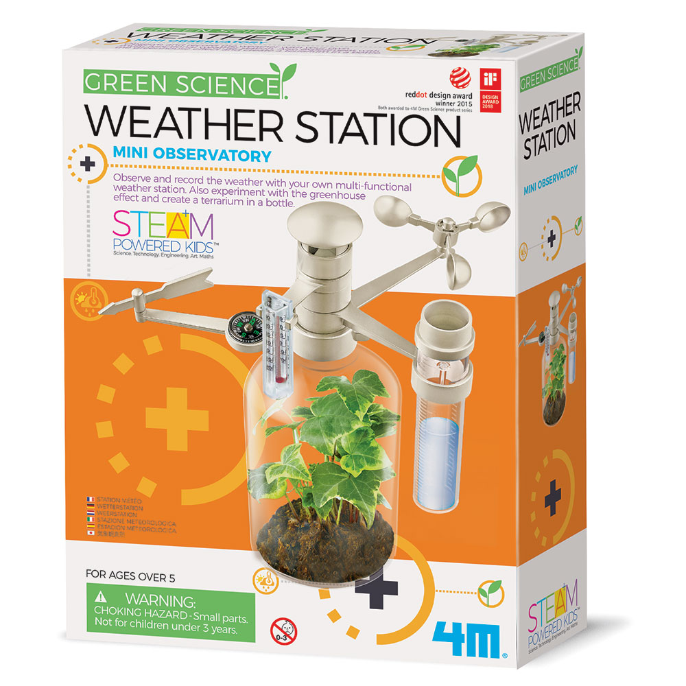Izdelaj napredno vremensko postajo z mnogimi funkcijami. Spremljaj vremenske pojave, spoznaj dejstva o vremenu in eksperimentiraj toplogredne pojave.