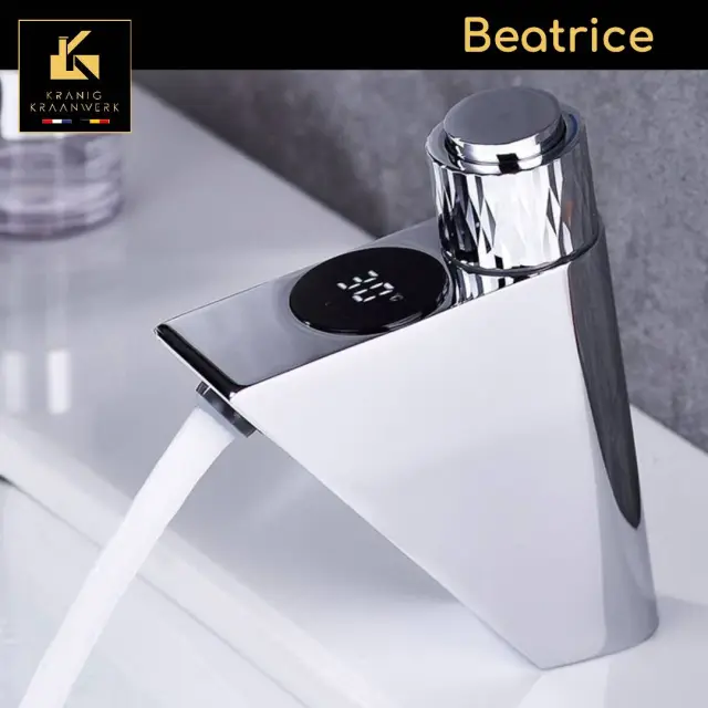 Vrhunska ekskluzivna pipa za umivalnik | Prikaz temperature | Gumb | Beatrice | Minimalizem
