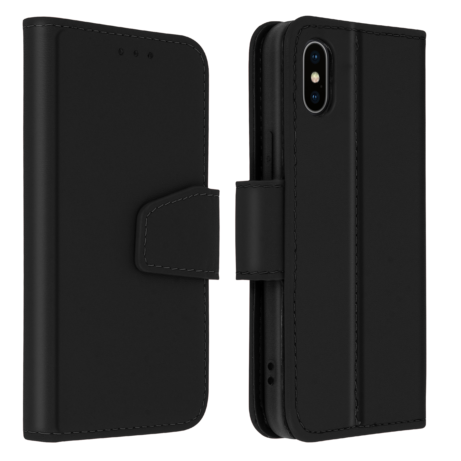 Praktičen in funkcionalen folio ovitek, posebej zasnovan za Apple iPhone XS Max. Popolnoma zaščitite svoj telefon pred udarci in vsakodnevnimi nesrečami. Vrhunska prevleka iz umetnega usnja s šivano površino za kombinacijo modernosti in robustnosti. Reže za kartice in opombe vgrajene v oblogo pokrova.